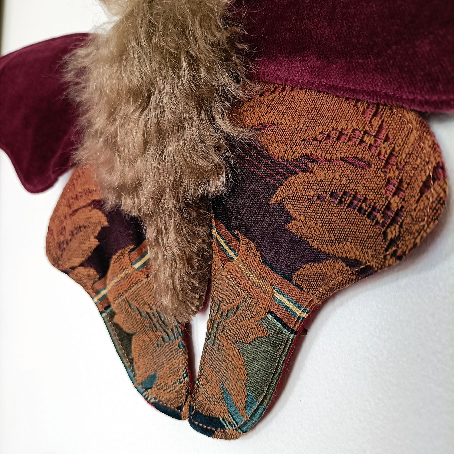 Their wings have been made using a vintage fabric in deep, slightly iridescent jewel tones, and a vintage 100% silk velvet.