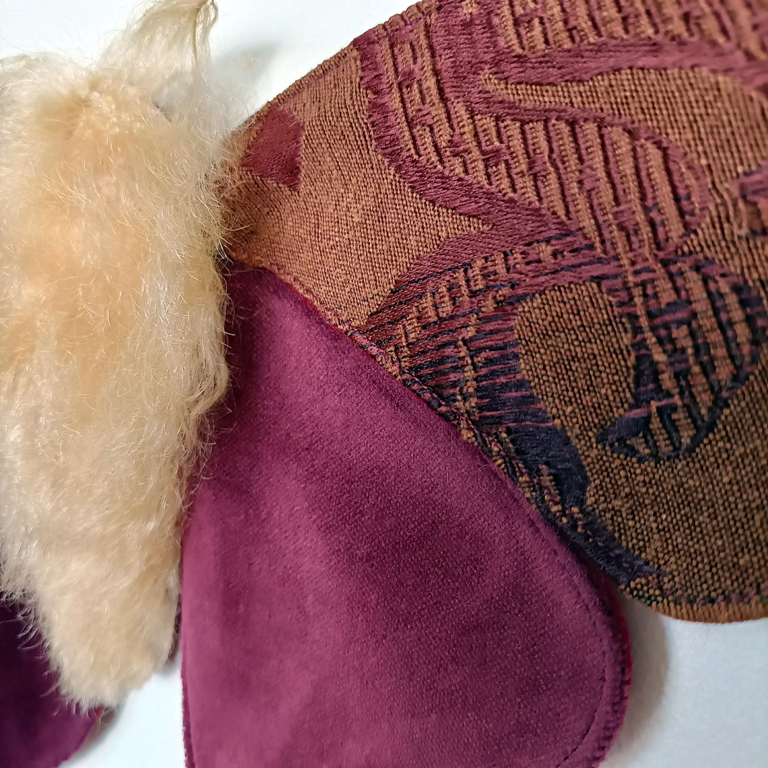 Their wings have been made using a vintage fabric in deep, slightly iridescent jewel tones, and a vintage 100% silk velvet.